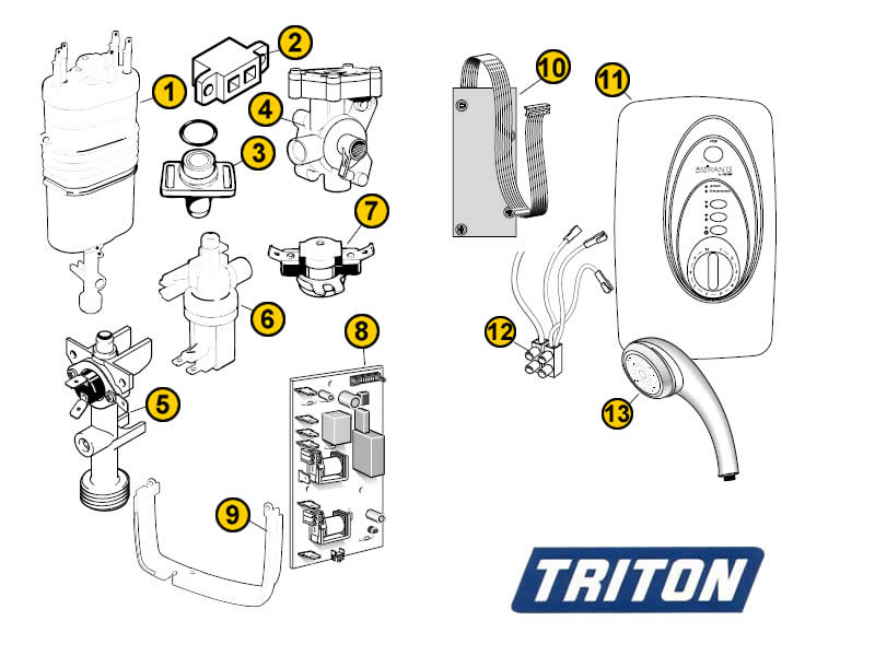 All available shower spares/replacement parts to fit the Triton Aspirante Electronic (Aspirante).
