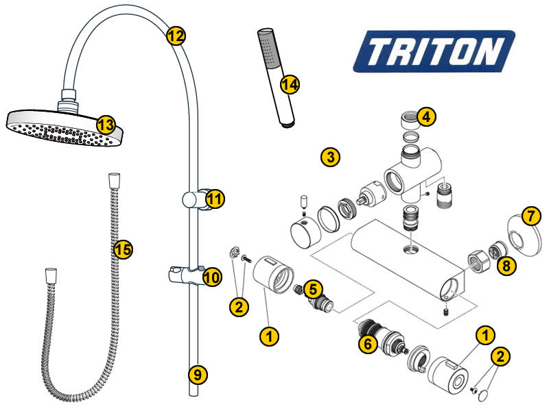 There are 7 currently available spares for the Triton Leah bar mixer shower with diverter (Leah).