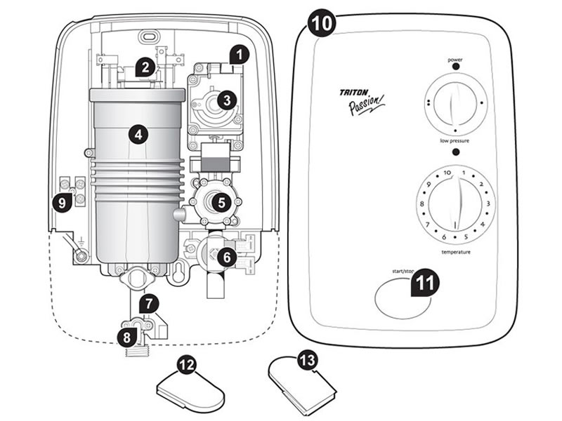 All available shower spares/replacement parts to fit the Triton Passion electric shower (Passion).
